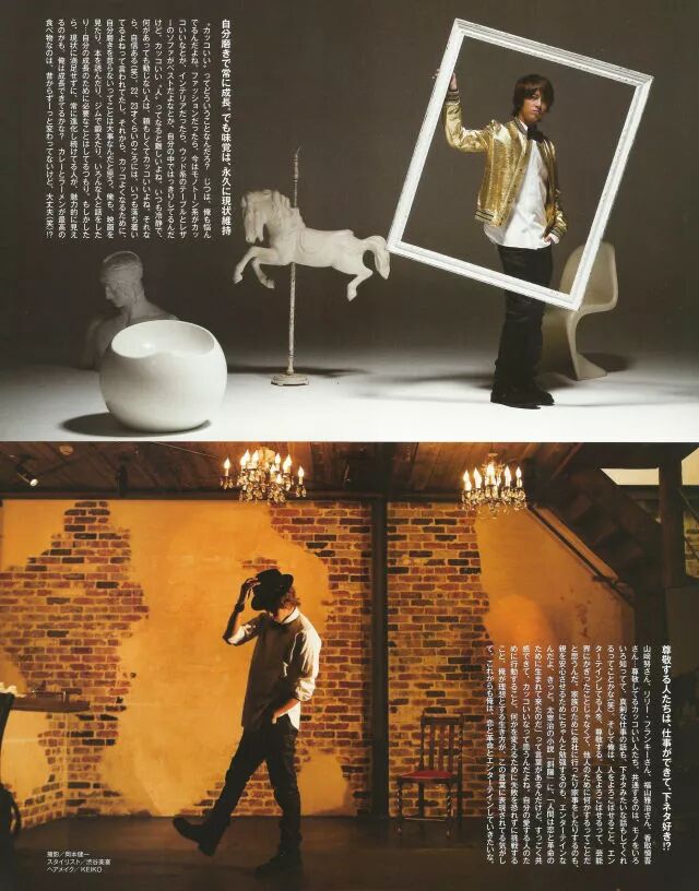 「帅」到底是什么?事实上,我也很苦恼。如果是时尚,现在的简约风很帅气。如果是室内装潢的话,木质的桌子和皮革的沙发是最好的。虽然自己心里很明白,但要说「帅气的人」到底是什么样的却很难。总是很冷静,不管发生什么,都不动摇的人,很可靠的人非常帅。如果是那样的话,我还是很有自信的。22,23岁的时候,经常被人说我很沉着。而且,为了变得很帅,我觉得最重要的是不能对自我磨练有所懈怠。我也会看电影,读书,去健身房锻炼,和各种人交谈…一直在做自己成长中所需要的事情。也许,不满足于现状,一直想要突破自己的人才是有魅力的。我也在成长吧?只是一直没变的是,我还是觉得咖喱和拉面是最好吃的食物,这没关系的吧(笑)!?