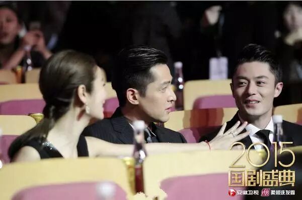 之后两人参加某盛典,在台下一直很开心地在聊天,可是中间夹了个胡歌,大家所有注意力都在“是胡不是霍,是霍躲不过”这对cp上