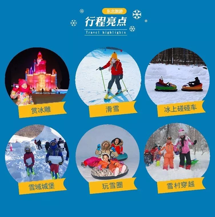 ❄门 票:冰雪大世界、亚布力国际滑雪场(2小时含雪具)、威虎山雪村(雪村门票+雪村4小时滑雪+雪圈+穿越、狩猎+搭雪城堡+冰上碰碰车等)、观赏冬捕捕鱼、索菲亚大教堂