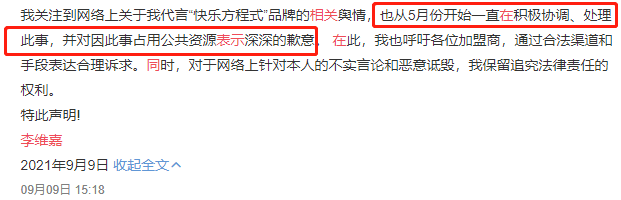 同时表明一直关注品牌的舆情,从5月份就开始积极协调此事。