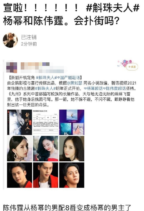 好不容易确定由陈伟霆与杨幂搭档,当时还有不少人唱衰,担心会扑街。
