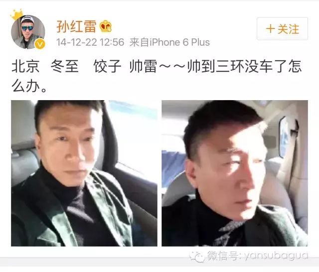 孙红雷可是帅得三环都没车的人啊!!!