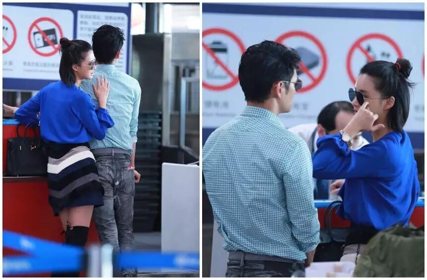 她与袁弘出发去德国准备婚礼,半丸子头可爱又俏皮,蓝色无领衬衫搭配波浪线条短裤很清新。
