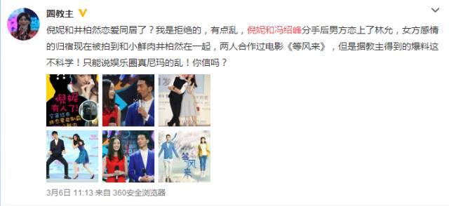 昨天微博大V发出消息说倪妮和井柏然在一起了!