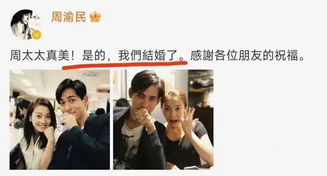 果不其然,在2015年年底,周渝民突然在社交平台上公布了结婚的喜讯。