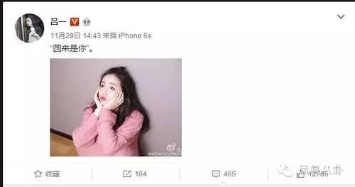 细心网友发现,11月29日,吕一微博发了一张酱紫的自拍,配文字:“圆来是你。”这微博单看似乎是在自我调侃脸胖吧~