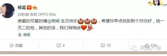 如果知情的话,那么这条生日祝福就是在帮唐嫣掩饰恋情,再想想,用一条生日祝福刻意在说唐嫣单身,未免也太此地无银三百两了吧…所以小妹更相信是不知情,起码不知道她当天会宣布,是肯定的…