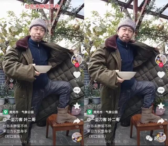 视频中叶先志身穿绿色大衣,头戴棉帽,手里还拿着一个碗,脚踩在凳子上,有趣的是他还特意给自己抹了络腮胡,对口演唱了一首京剧,表情搞怪,和潘长江十分相似,从视频中可以很清楚的看到此时的叶先志虽然精神状态饱满,但是身体还是比之前消瘦了很多。