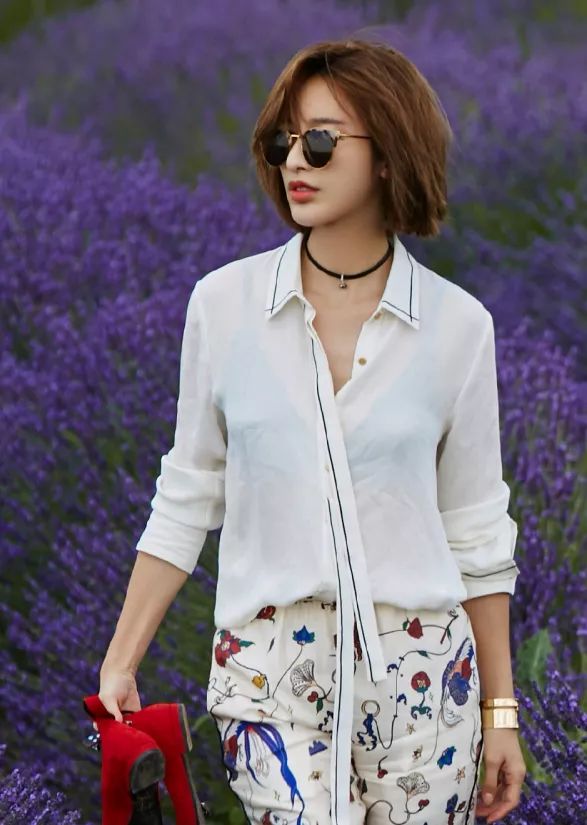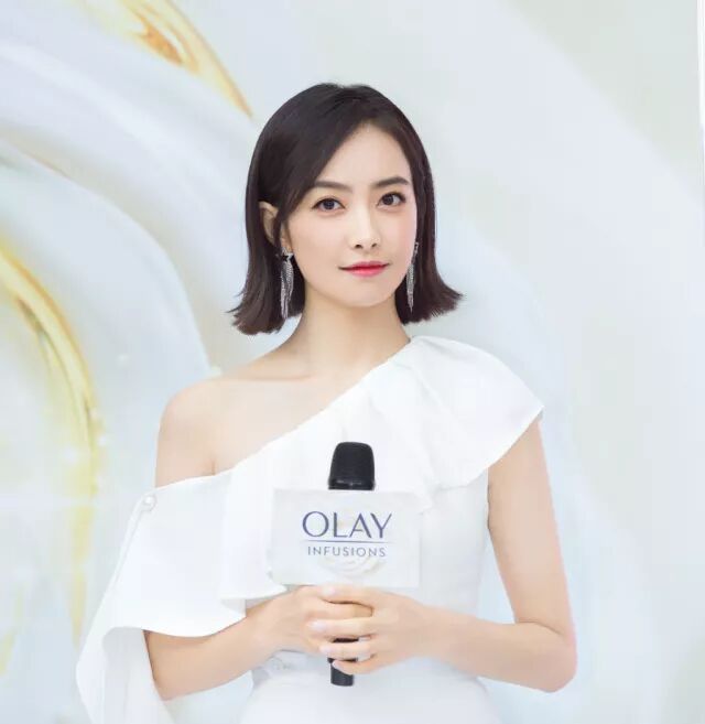 一般这种发型给人感觉成熟稳重,但是搭配赵丽颖的圆脸,还是感觉亲切又可爱,而且露出整张脸会更立体。