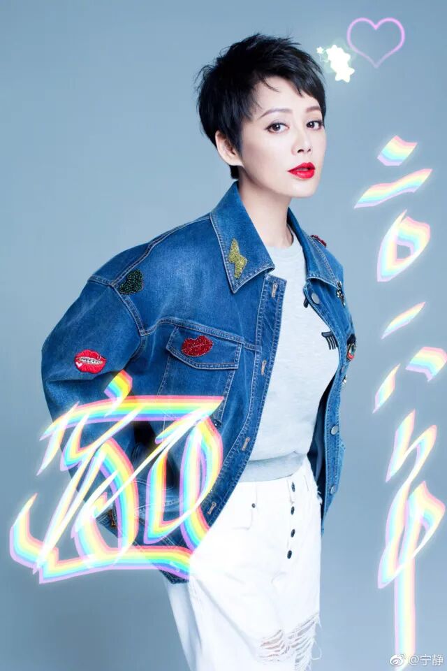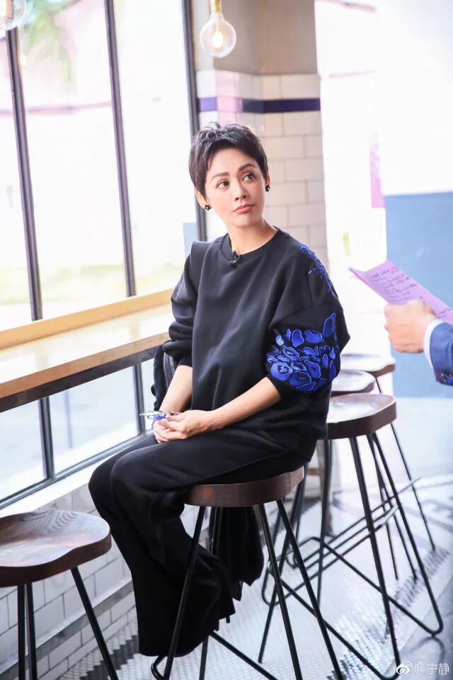 而宁静新剪的一头超短发,让本来就率性豪爽的她,更添霸气。