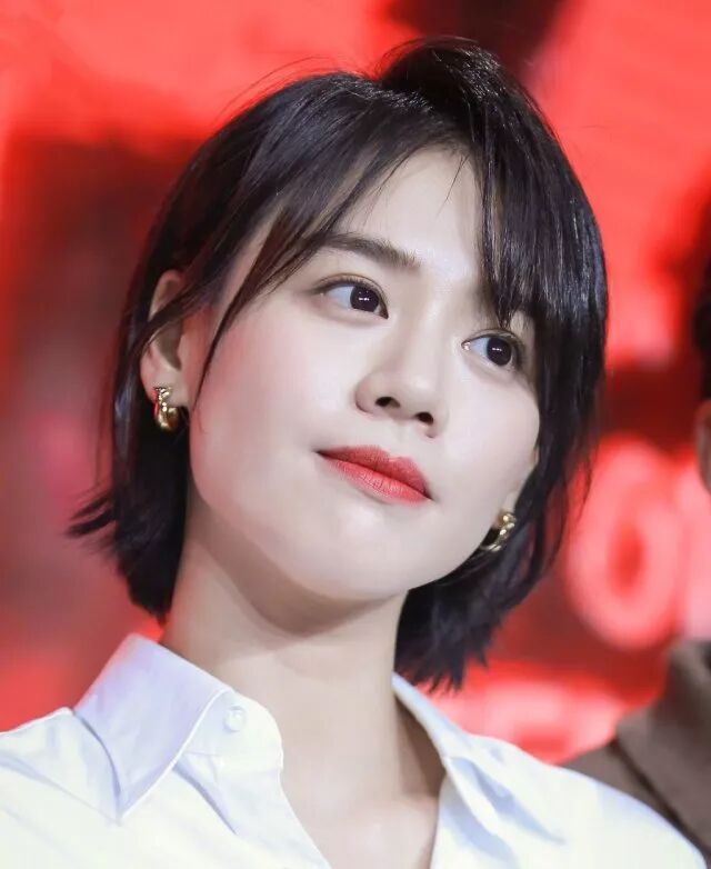 感觉她终于一点点地剪到了她最适合的长度啊,拉直的头发,搭配雾黑发色,整个人干净利落,又不失温柔气质。
