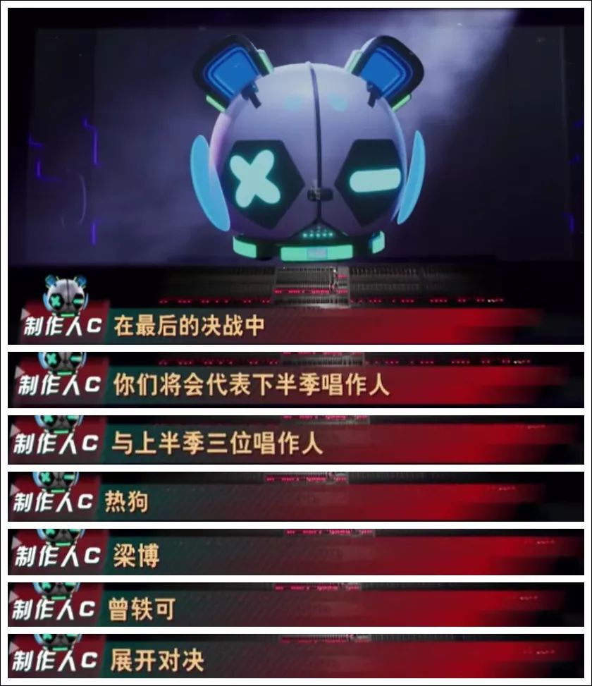 而在第11期节目开始,对于这场对决,节目组的介绍镜头中,以“唱作人”卡片代替了曾轶可;