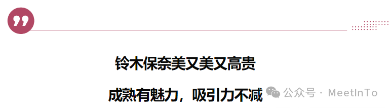 看着铃木保奈美甜美亮丽的外型,你大概难以想像她今年已经58 岁,作为人气一直高企的女星,她除了保养得宜,还随着年纪增长,多了几分成熟女人应有的气质和妩媚感,举手投足都散发着光芒