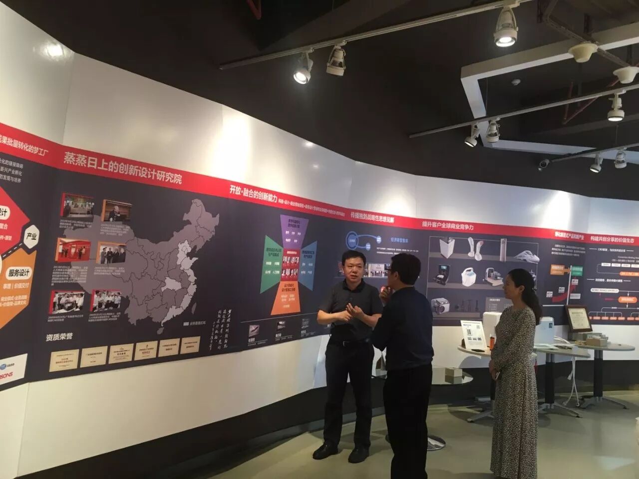 赵宇波院长陪同来宾参观了创新院的展厅和实验室,详细地介绍了创新院的定位,运营模式,推动科技成果产业化的创新设计理念,并通过介绍创新院历年来的经典服务案例,展示了创新院科技成果转化的能力。