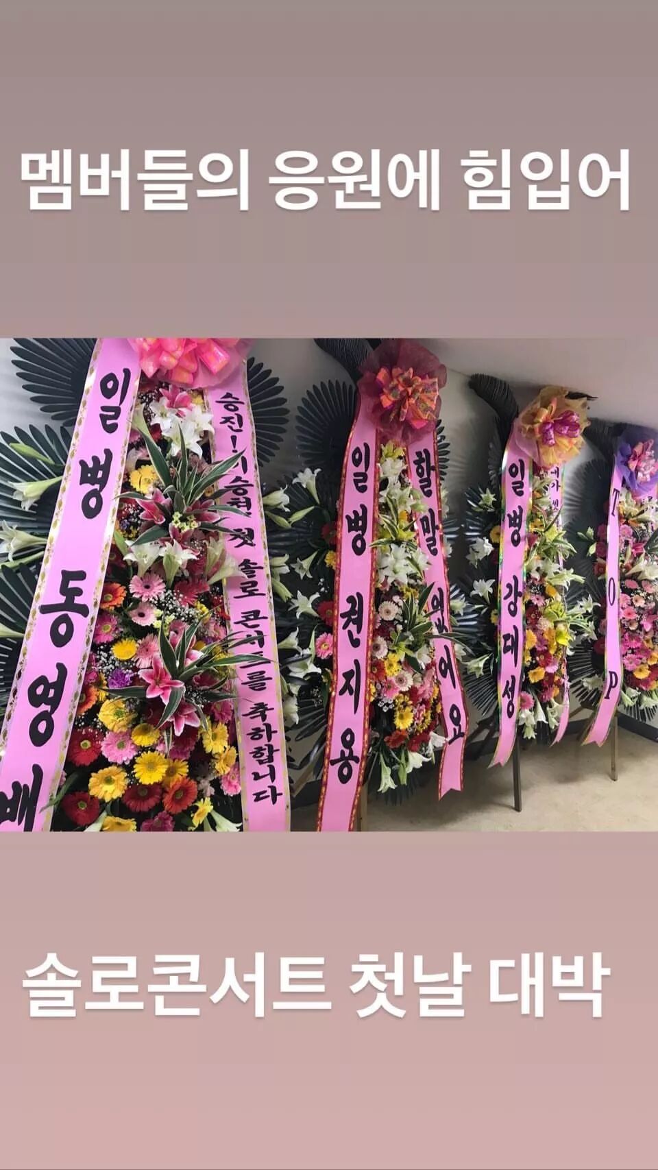 【胜利INS Story更新花篮照】:成员们的应援让我很有力量,SOLO演唱会第一天大发