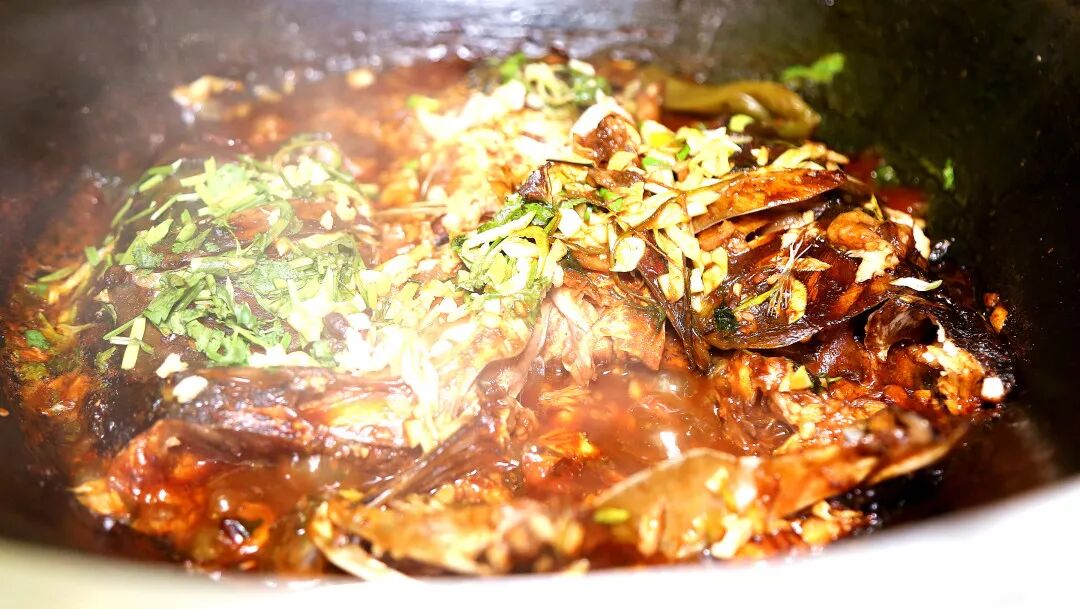 四十分钟可真不是白炖的,胖头鱼鱼肉原本的鲜味,再加上秘制的汤料味进入到鱼肉里,浓浓的酱香味道,超级无敌的美味了。吃起来还有点胶原蛋白的感觉,黏黏的,口感很奇妙!