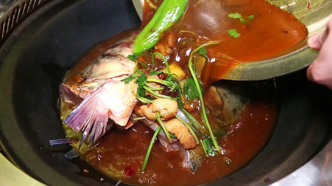 鱼下锅后所加入的汤底,也是店家秘制的酱料炸锅后,再加入精心熬制的大骨汤熬出来的。这秘制酱料可以说是鱼锅味道的精髓所在了!