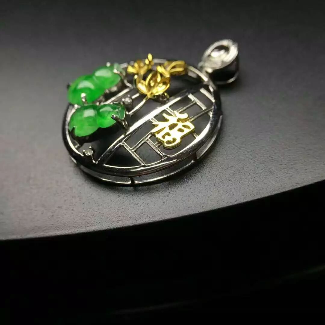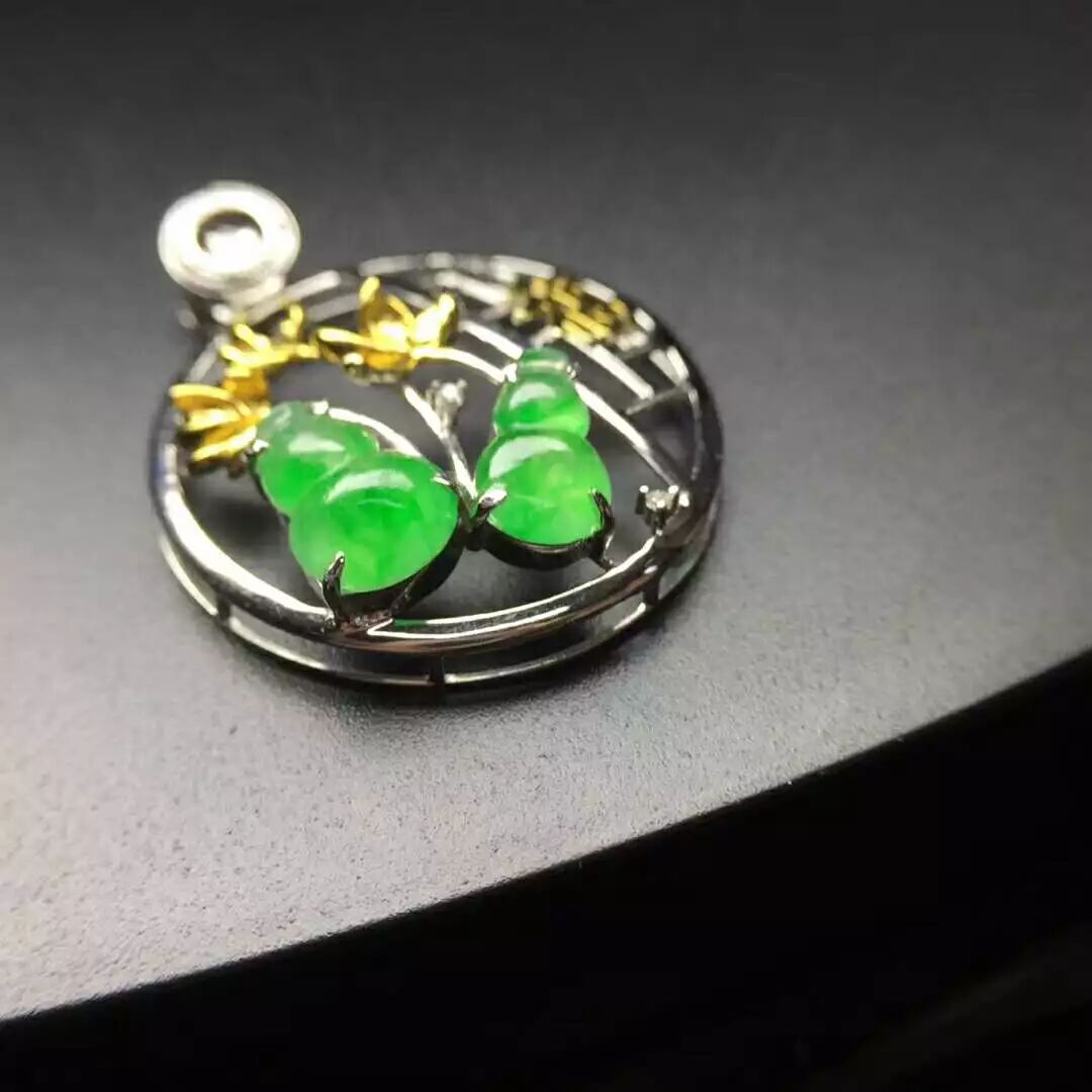 18K双葫芦挂件,冰种质地,葫芦颜色正阳、清爽,镶嵌设计别致,超值推荐。