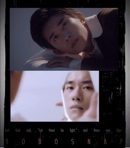 被唤醒的少年似乎在祈祷着什么,缓缓起身,踏着脚下折射的光芒,他捡起一块破碎的镜子,透着光,画面里映出少年精致的面容。