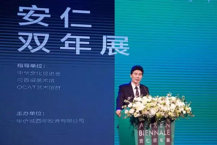 中华文化促进会副主席董亚平先生代表中华文化促进会、何香凝美术馆、华侨城当代艺术中心(OCAT)馆群三家指导单位向首届安仁双年展成功开幕表示祝贺。