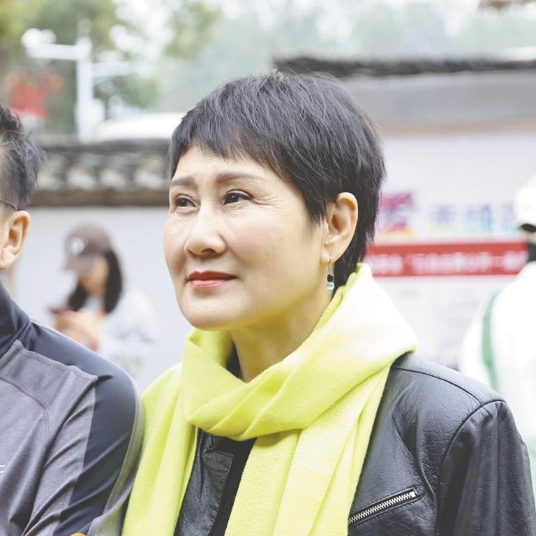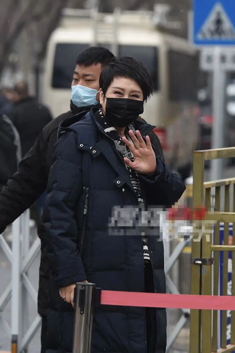 面对镜头整个人在非常有好的打着招呼,而且这个时候天气温度比较低嘛,所以她外面穿了一件黑色的羽绒服,穿在身上的话,确实会显得比较的肿,毕竟到达了一定的岁数,肯定没有年轻人那么的抗冻呀