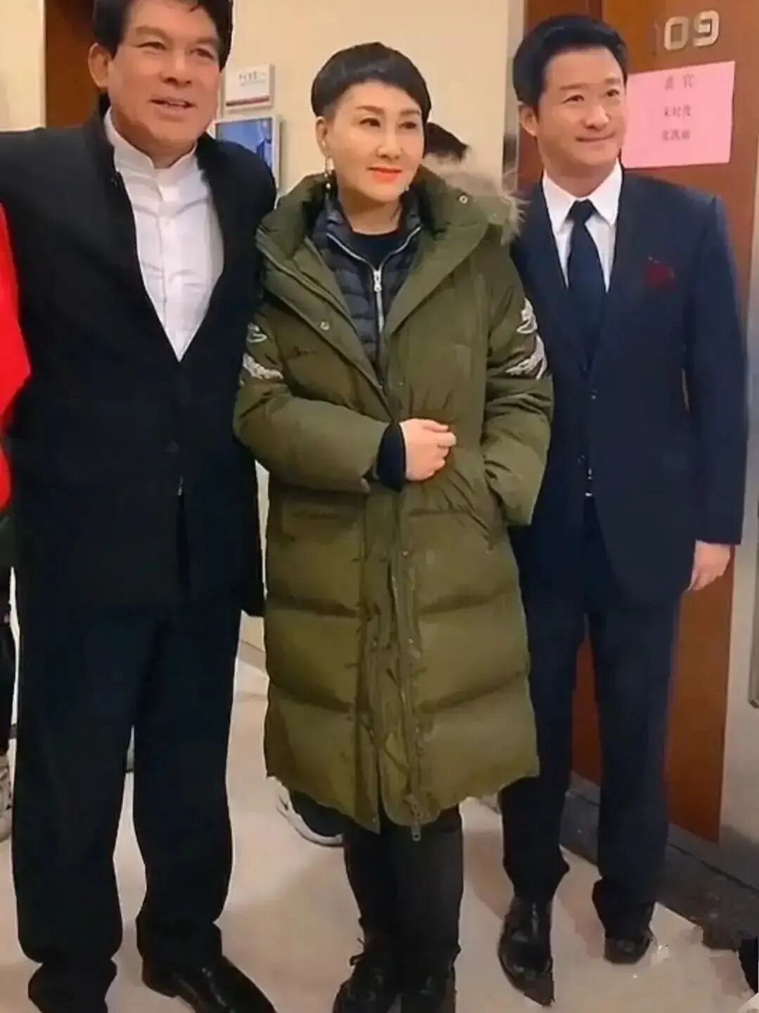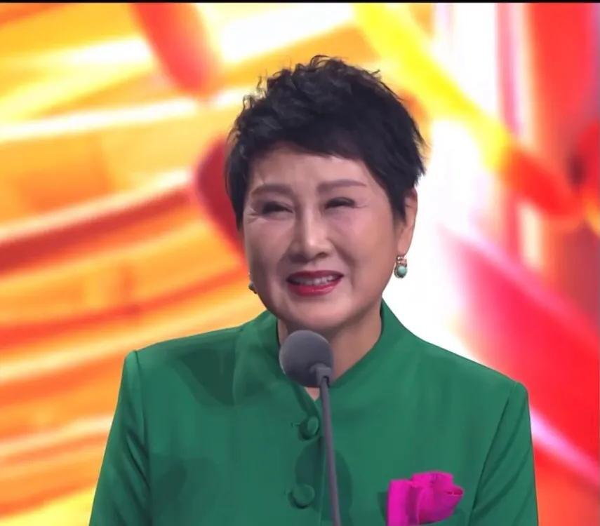 这次张凯丽她身上穿的这套衣服选择的颜色还是绿色的,而且在口袋那里专门是有一点点玫红色的加以修饰,感觉这样的话显得稍微有一点庸俗呀,而且这个时候可以看到脸上的皱纹太多了