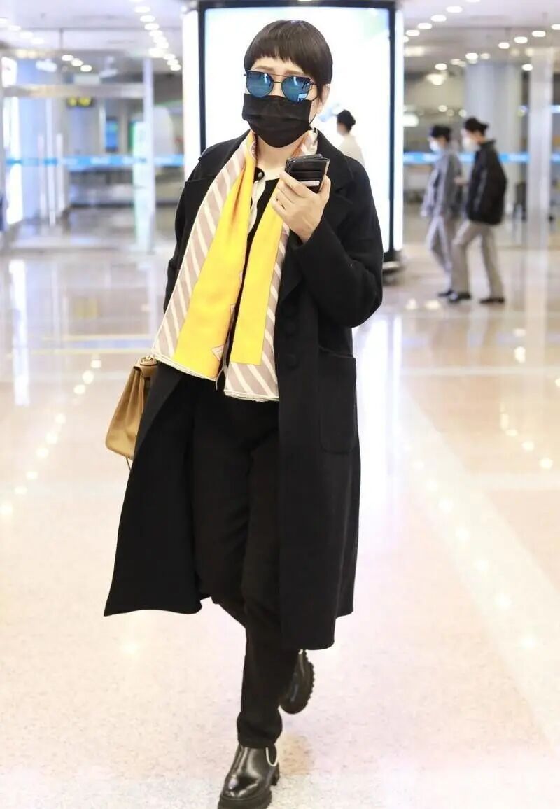 头发的发量还是比较多的那一种,但是每次感觉她剪的发造型有一点像那种锅盖头,她并不是特别适合呀,她这个时候穿了一件黑色的大衣,外套可能颜色比较的低调,所以她脖子上面是戴了一条颜色比较亮的围巾