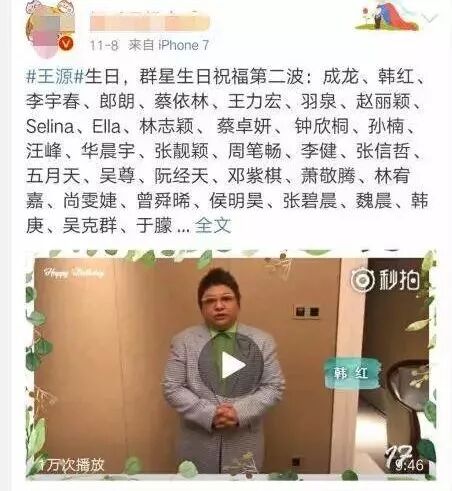 看王源17岁生日那年,明星祝福阵容,你就会惊叹到傻眼,这个小孩人缘竟如此强大。