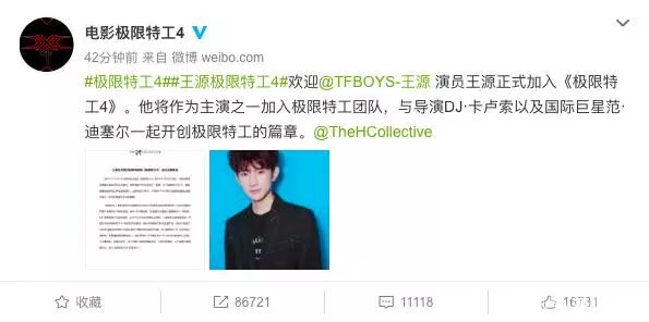 去年8月份,他通过试镜,脱颖而出,正式签约好莱坞影片《极限特工4》,成为主角之一。