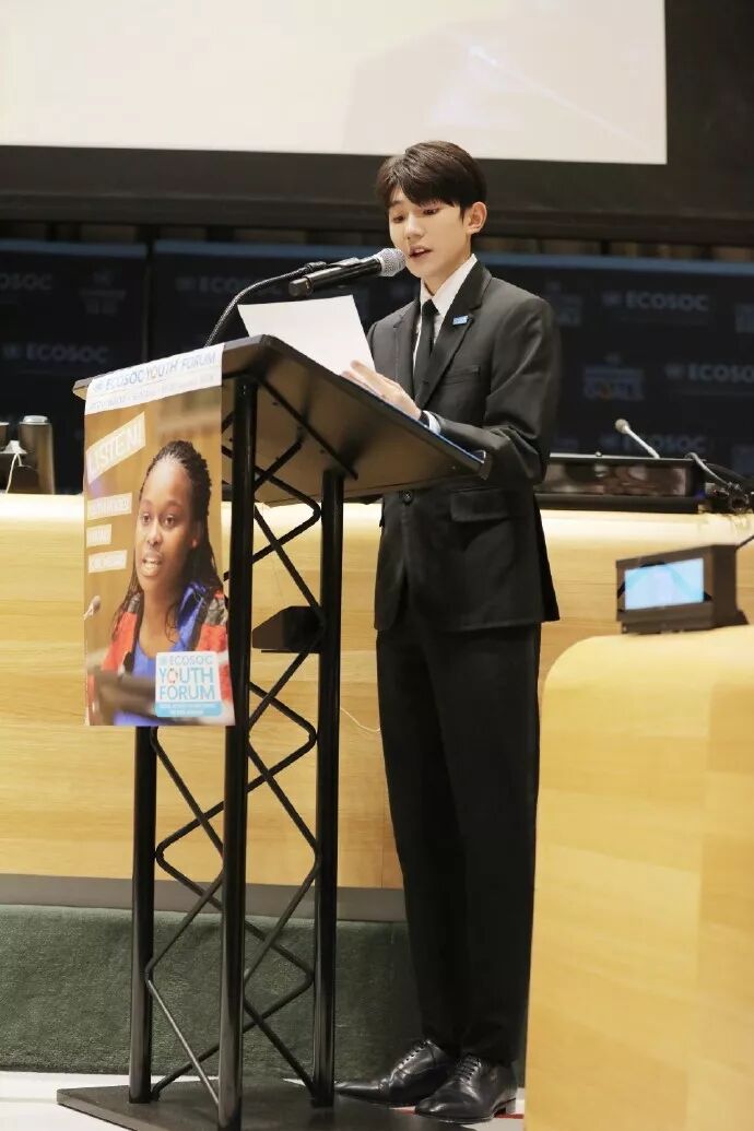 王源曾两次受邀到联合国演讲,站在舞台全程英文演讲,他没有表现出一点怯场。