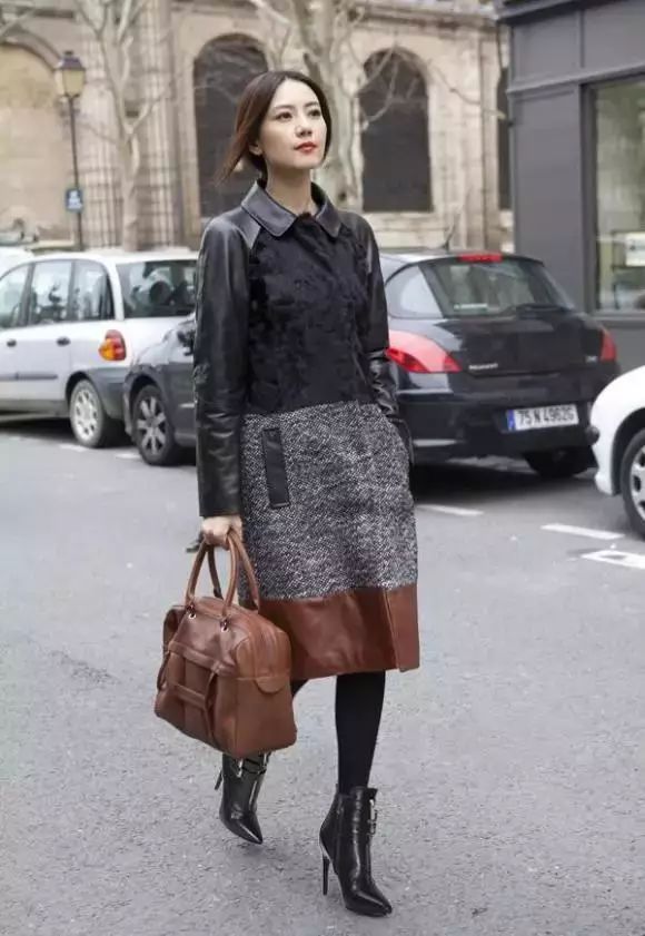 2、拼色风衣+尖头短靴