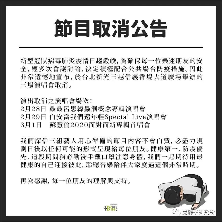 受疫情影响,所属的相信音乐发布公告,表示经过多次开会讨论决定首唱会取消,谢谢每一位朋友的理解和支持。