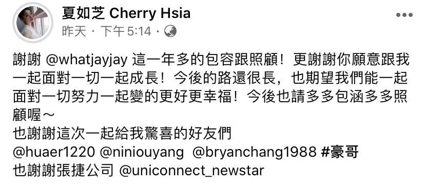 对于请辞的原因,小祯在脸书上表示是一些个人因素。