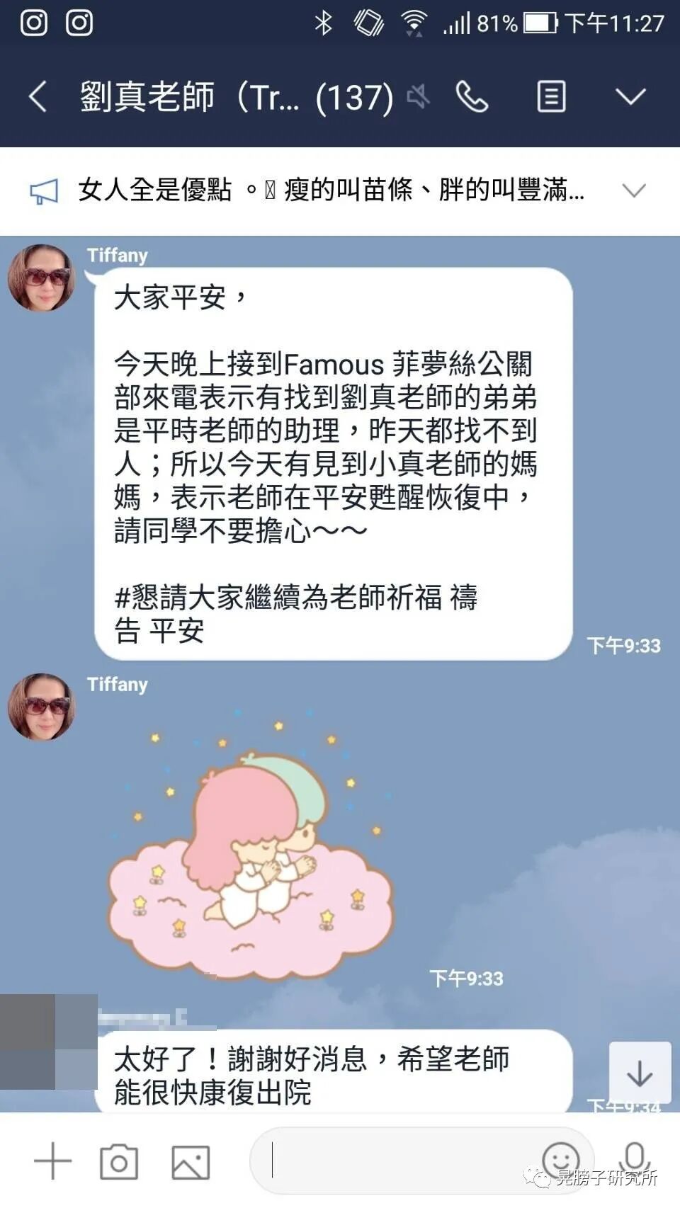 刘真停更多日的社交平台开始更新,是由她的助理上传。(这也解释了为什么情人节刘真还在更新,2.18却传出病危多日的消息)