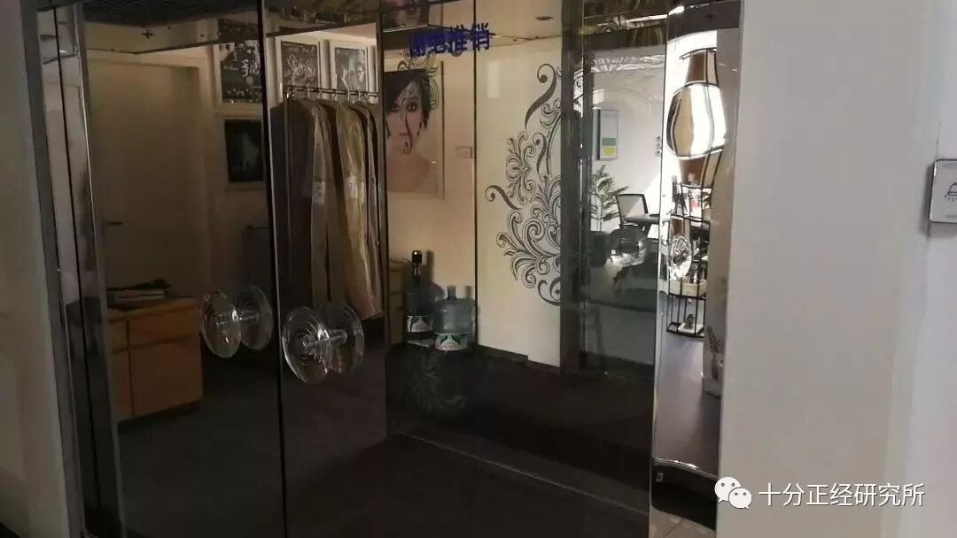 范冰冰工作室位于北京二环某个大厦。诸多记者已经到访过此地。他们对着玻璃大门拍照,在此地驻足徘徊。他们留意到,“范冰冰工作室”的文字介绍已经落满灰尘。落地镜上,贴有范冰冰卡通画像,此时显得面目模糊。左边靠墙处,一排用防尘罩包裹住的戏服,似乎在诉说这里曾经的辉煌。