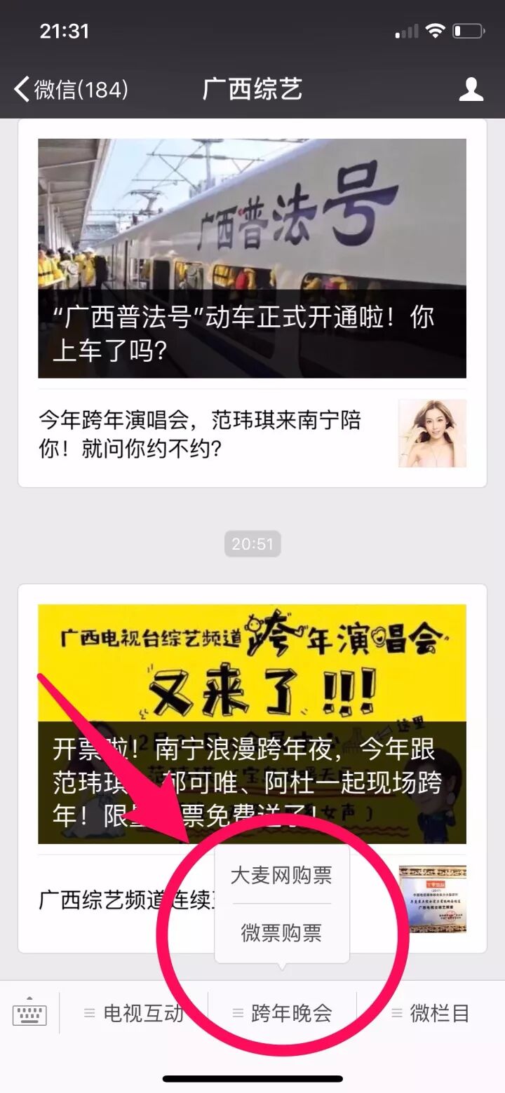 关注广西综艺频道电视屏幕下方的“不怕一万”公众号,把综艺频道跨年演唱会的海报进行截图,发送至朋友圈,再把发送朋友圈的截图发回“不怕一万”公众号,被系统随机抽到的幸运观众,就有机会获得包含纯正芝麻油的长康调味品特惠装礼盒一份。