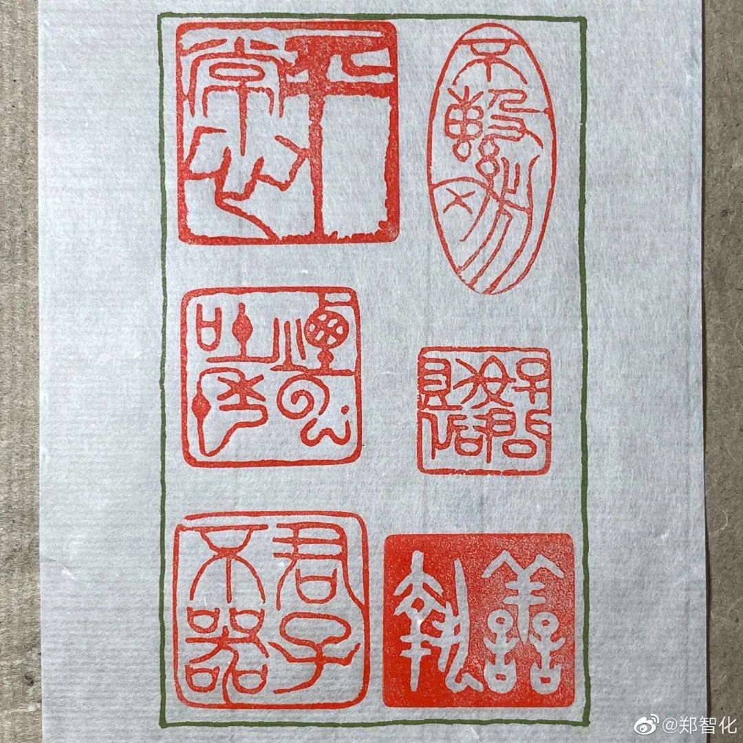 不仅可以书写多种字体,篆刻方面,郑智化也有涉及,这是一些他篆刻的作品,很有一定的水平。