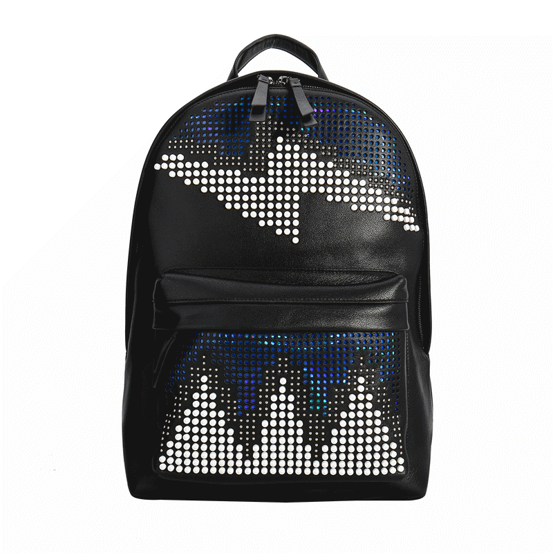 时尚的闪电元素再次出现在本季产品之中,这个季度以“点”的概念体现闪电元素。用圆形冲孔镂空、小爪钉、圆形胶钉分别阵列成闪电团,呈现了强烈的未来构成感。