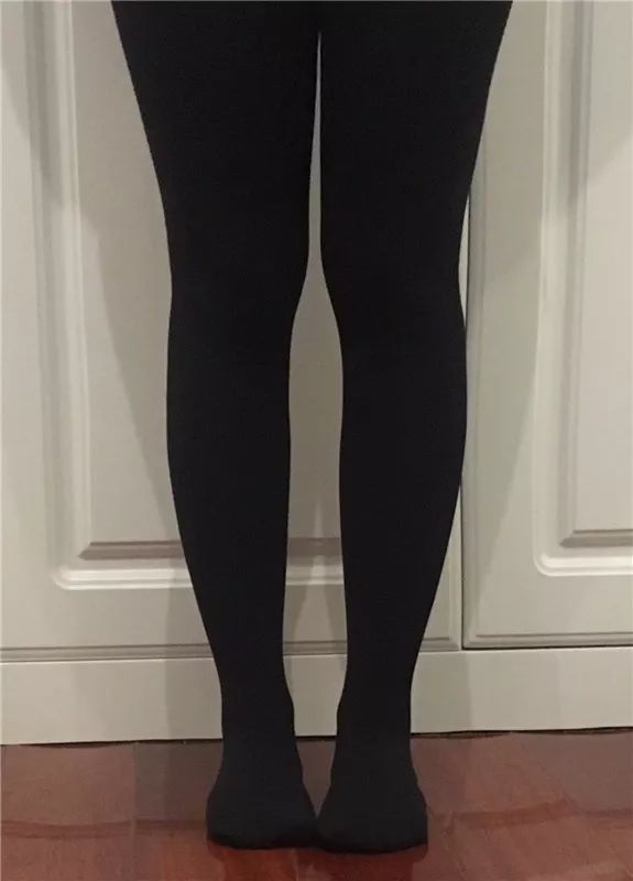 【美观度】这款瘦腿袜穿上后还是很顺滑也贴合腿型,完全没有褶皱的