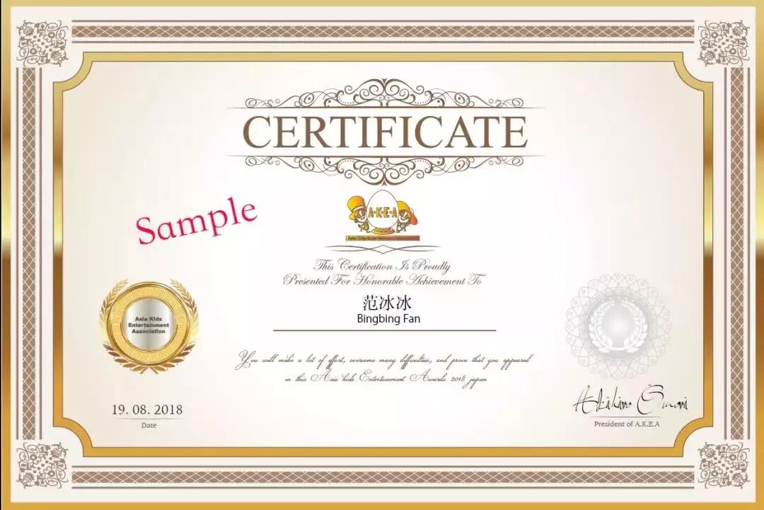 【Asia Kids Entertainment Association亚洲儿童演艺娱乐协会盖章,中日韩三国认证优秀学员证书!】