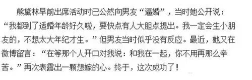 熊黛林本人也亲口承认男方已求婚↓↓↓