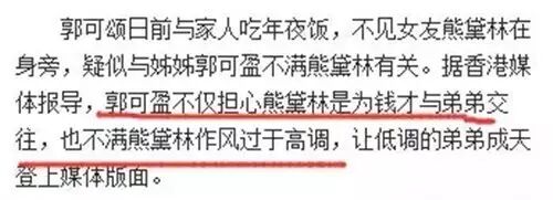 除了郭可盈,上面还有两个姐姐郭可欣、郭可思,郭可颂父亲叫郭达昌,以塑胶生意起家,旗下拥有五家公司。据说就是郭可思介绍熊黛林给弟弟认识的。