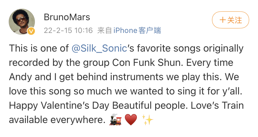 via:Bruno Mars微博