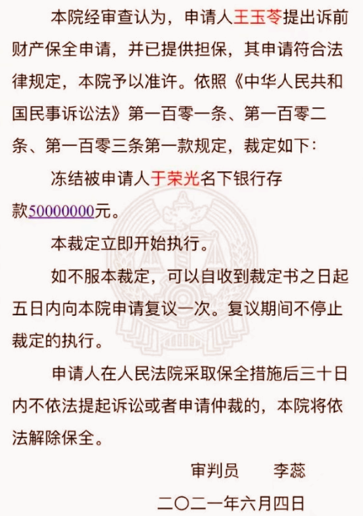直到2021年,娱乐圈曝出了惊天大瓜,一向以洁身自好著称的老戏骨于荣光,被妻子王玉苓告上了法庭,还冻结了他五千万的存款。
