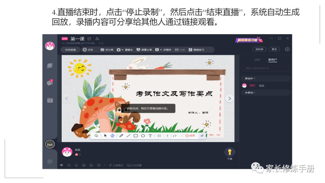 田丽|家信207-2020,一起成为网师(新手操作详解版)有图有解说 家长修炼手册 港台女星 2020-02-04 12:29:03 756 创作不易,用心坚持,欢迎请BaGua喝几杯爱心咖啡!打赏并支持本文 打赏并删除本文 改变不了,我就享受。既然已经注定要在家里待着,那我就做一个快乐的宅女神。01—一起做网师吧为什么?一、大势所趋。不解释。二、政治任务。你懂的。三、有趣有效。是真的。这是一个最好的时代,也是一个最坏的时代。区别在哪里?也许在于我们是一个什么样的人。标准很多,其中一个核心,窃以为是“与时俱进,终身学习”。我们是不是在终身学习?当然是。每一个都在不自知地吸收新知识,学习新技能。只是程度不同而已。如果一定要学习,何不选择一种更高效的学习方式?各种学习方式请自行参考下图,感谢图片制作者,此图至少为我节省了一千字……此图会让我们充分明白:直播是个好东西。02—如何成为网师为了给大家讲清楚这个问题,我借用了新身份,重新注册,并且把每一个步骤都截图出来,配以简单的文字说明,希望能帮助到大家一点点。当然,我不能保证我介绍的功能完全覆盖了,但这就是我目前接触和探索到的所有功能了,感谢和欢迎您勘误和补充,谢谢!03—学习是人的天性你是一个爱学习的人。请大家不用怀疑,因为每一个人都爱学习。因为好奇心是每个人的天性。因为好奇,所以学习。当我把直播技术分享给班上的孩子们,他们无不欢呼雀跃,跃跃欲试。作为一个四年级的孩子,直播并不是易事,但兴趣是最好的老师,兴趣带领他们不断摸索,不断试错,最终成功开课,成为小老师。昨晚收到一个孩子写下的直播感悟:非常真实,也非常珍贵。直播过的孩子普遍感受到直播之前会各种焦虑纠结,直播过后就觉得非常快乐,我也有同感。所以,无论什么原因,让我们成为网师,我们就只去享受吧!来,和我一起“改变不了,我就享受”!对了,祝贺以下同学,成为第一批幸福班网红小老师!棒棒!!★ ★ ★ 【21天瘦身打卡】★ ★ ★ 第1天:2.1-64.1公斤第2天:2.2-63.2公斤,比前一天轻了0.9公斤第3天:2.3-62公斤,比前一天轻了1.2公斤,总计轻了2.1公斤第4天:2.4-61.8公斤,比前一天轻了0.2公斤,总计轻了2.3公斤(小结:昨天犯了巨大的错误,一日三餐,晚餐晚上八点多才吃,体重肯定下不去的。改!)往期回顾:田丽|家信204-考虑了15个小时,豁出去了,开始21天瘦身打卡! 田丽|家信205-在家除了休息,还可以减肥,想想就开心 田丽|家信206-疫情之下,还能不能进行户外跑步? 创作不易,用心坚持,欢迎请BaGua喝几杯爱心咖啡!打赏并支持本文 打赏并删除本文 感谢您的支持鼓励,我会继续努力的!文章地址:用户邮箱:打赏金额:USDT 请输入数字点击”去打赏“,即可进行打赏支持本文章哦 田丽 About the Author 家长修炼手册 功能介绍:像孩子上学升级一样,家长也需要修炼进阶。 Related Posts 田丽|家信207-2020,一起成为网师(新手操作详解版)有图有解说 2020-02-04 12:29:03 田丽|家信23-驾经典之舟乘风破浪 2019-03-14 07:14:32 田丽|学生27-《幸福小报》第24期: 2019-03-12 19:55:47 田丽|家信109-孩子,我不用你请我吃海鲜…… 2018-11-19 07:02:18 田丽|家信NO.100-两年,100封信,20万字…… 2018-10-08 07:00:16 发表评论