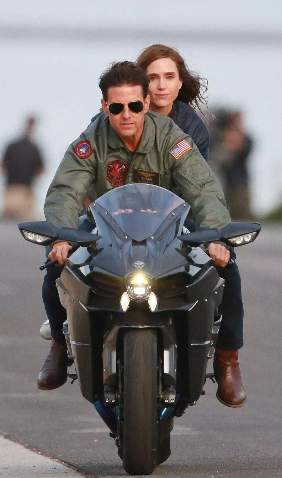 汤姆·克鲁斯主演的《壮志凌云2》今天发布全新的片场照,虽然还是阿汤哥骑着摩托的帅照,但是他载着一位美女而来。仔细一看,这是女主角詹妮弗·康纳利,这也是她的片中造型首次曝光。