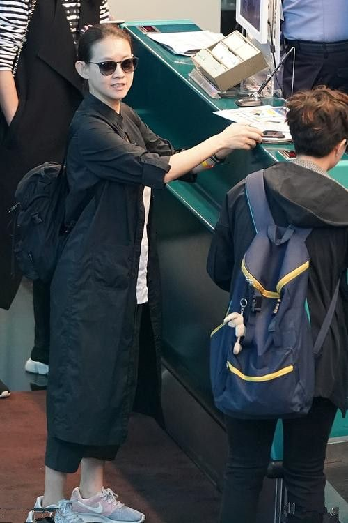 这次也是被别人给抓拍,她整个人身高并不是特别的高,但是每次整个人包裹的还是比较的严实,就像这个时候穿的一件黑色的风衣外套,下面是搭配的一双运动鞋,感觉整个人打扮的也是比较的低调