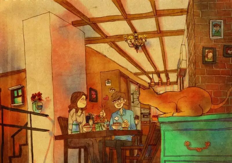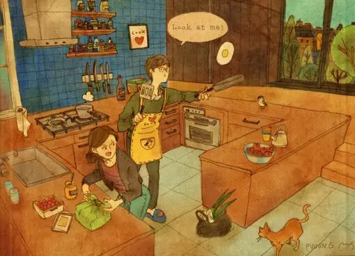 但是因为自己的坚持,她的漫画也受到了各个国家的人的欢迎。也许漫画就是这样一种艺术,它虽然被称为边缘艺术,不像电影,电视那样有颜值爆棚的明星或者炫酷的技术,也不像摄影那样真实有冲击力,但是Puuung用色彩,线条把生活中每一个动人的瞬间记录下来,温暖了那些看漫画的人,这也是漫画在除去针砭时弊和娱乐大众的功能外另外一种表现形式。