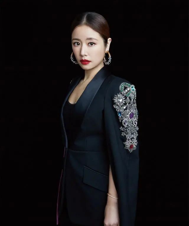 在至今为止的林心时尚中,成熟性感的风格也不少见,例如,这个斗篷的西装的形状,这是一种结合斗篷和西装形状的崭新设计,黑色虽然很沉闷,但是手腕上绣上了石头,用闪闪发光的石头演绎出高级感,林心如在首饰上同样选择雕刻设计的金属大耳环,与肩刺绣上下呼应,使整个造型充满大气美感。