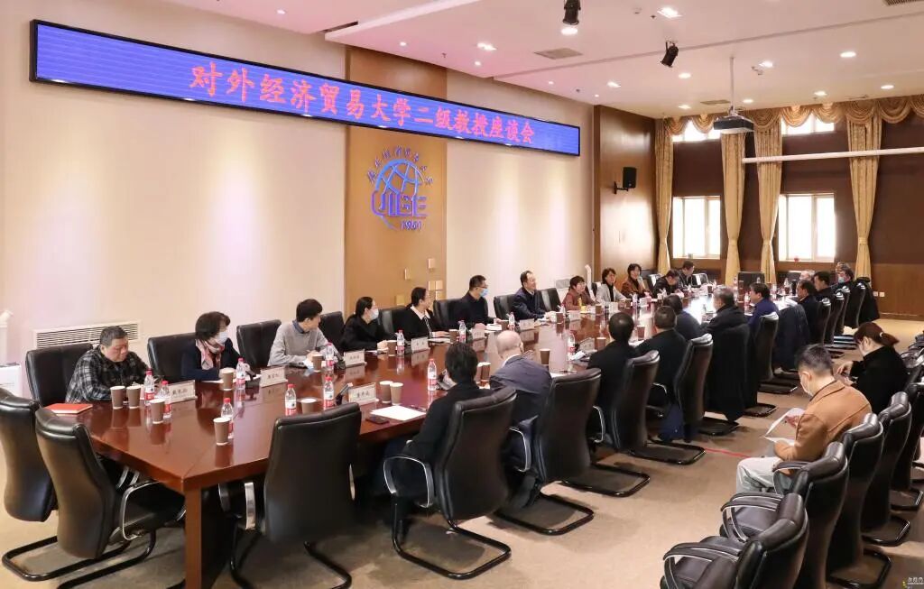 二级教授代表林桂军、夏友富、向明友、孙健、卢进勇、郝旭光、桑百川、黄勇、刘树林、戴长征、范黎波、董秀成、左海聪、唐宜红、陈须隆依次建言献策,从各自学科出发,交流观点。聚焦话题包括学校的发展定位与顶层设计、制度规则意识、学科拓展、国际化特色以及如何发挥二级教授作用等。